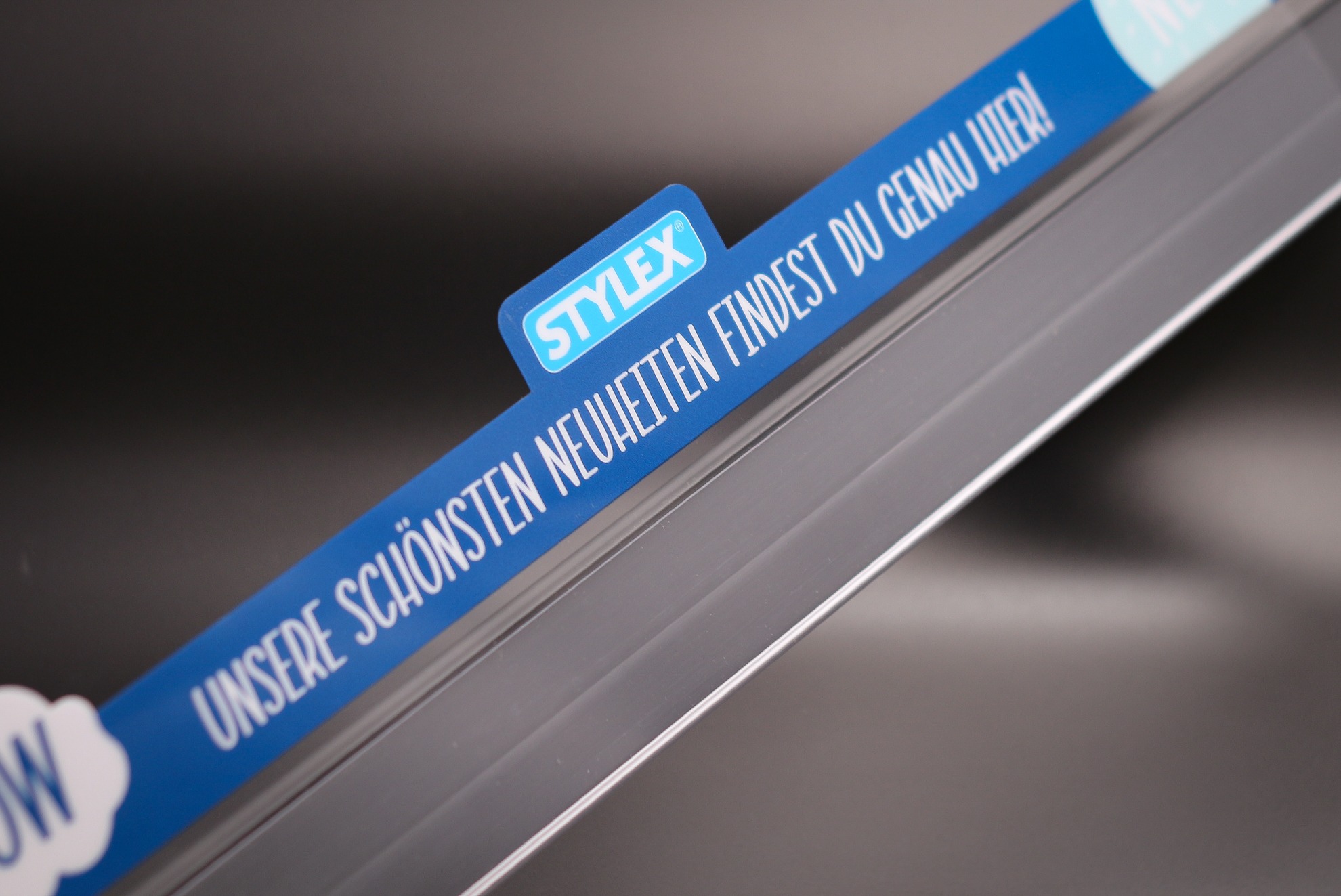Ihre Werbung perfekt platziert! Regaleinsteckleisten bieten viel Platz zum Bewerben des Produkts oder der Marke am POS.